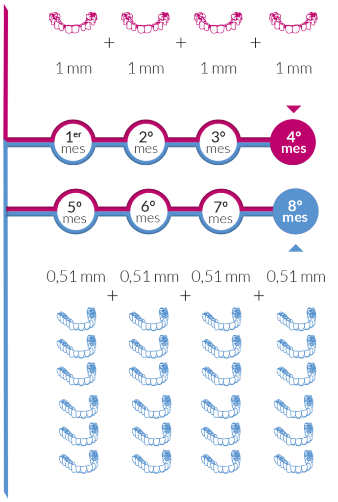 El bracket virtual estampado en la cofia, permite una efectividad inédita, al nivel de un bracket.