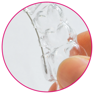 El arco lingual está por dentro. Pero no es solo eso. El polímero que compone nuestras férulas y cofias es uno de los más avanzados del mercado, y uno de los más transparentes.